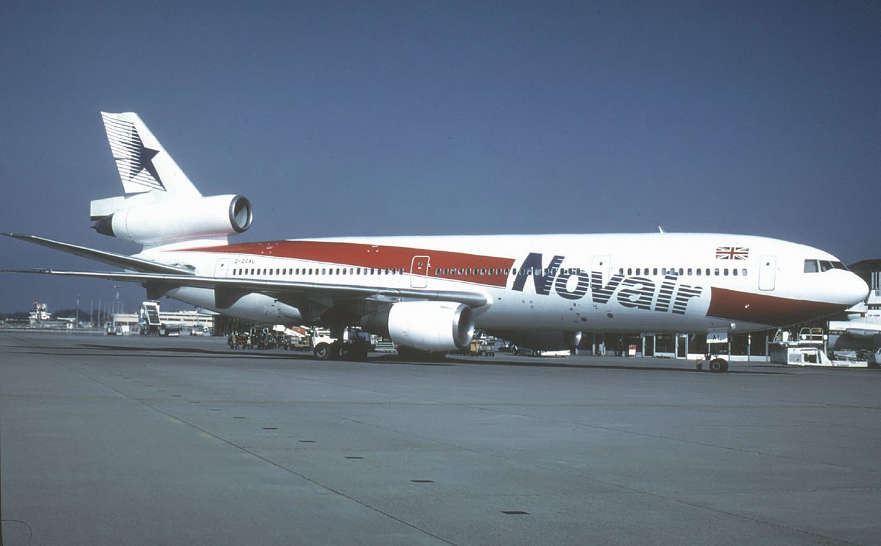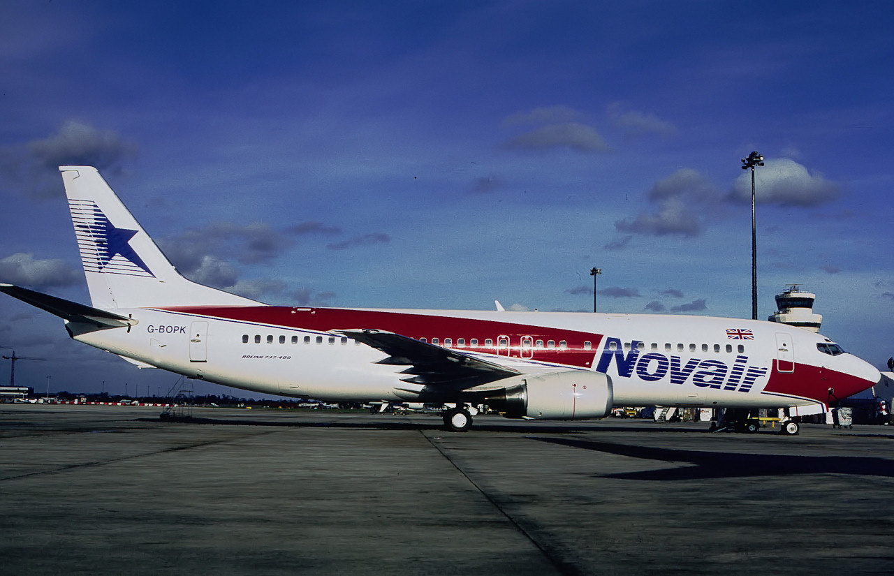 hinzu. CAL AIR verband nicht nur London mit den Urlaubsgebieten rund um das Mittelmeer, sondern auch Manchester, Glasgow, Birmingham und Newcastle. Als BCAL am 14.4.1988 von British Airways aufgekauft wurde ergaben sich für CAL AIR Schwierigkeiten. Diese gingen darum, daß British Airways die Rechte am schottischen Löwen auf dem Seitenleitwerk erwarb und diesen für ihr neues Charterunternehmen Caledonian verwendete. Die Schlußfolgerung für CAL AIR war die Namensänderung am 7.12.1988 in NOV AIR und einer neuen Farbgebung an ihren Flugzeugen. Im März und April 1989 kamen zwei fabrikneue Boeing B-737-46B zur Flotte die ein Jahr später durch eine dritte ergänzt wurde. Der starke Konkurrenzdruck seitens der neuen Caledonian brachten NOV AIR in wirtschaftliche Schwierigkeiten, so daß sie am 4.5.1990 Konkurs anmelden mußte. Je eine B-737 ging an British Midland, Sobelair und Air Europe. Zwei DC-10 gelangten zur Federal Express und die dritte wurde für die fliegende Augenklinik "ORBIS" umgerüstet. |